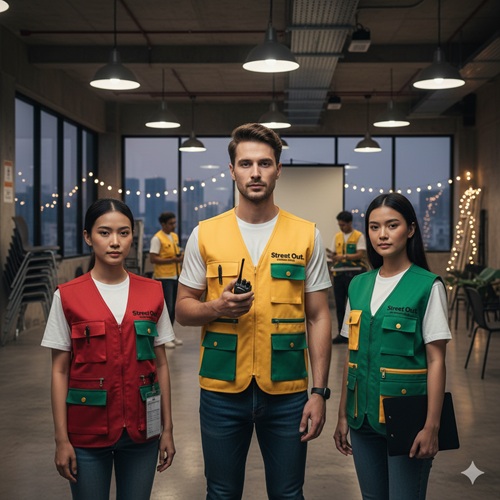 Street Out Konveksi produksi rompi murah kualitas premium. Didukung mesin canggih dan tenaga ahli berpengalaman, hasil rompi kami dijamin lebih rapi, kokoh, dan jauh lebih berkualitas untuk Anda.